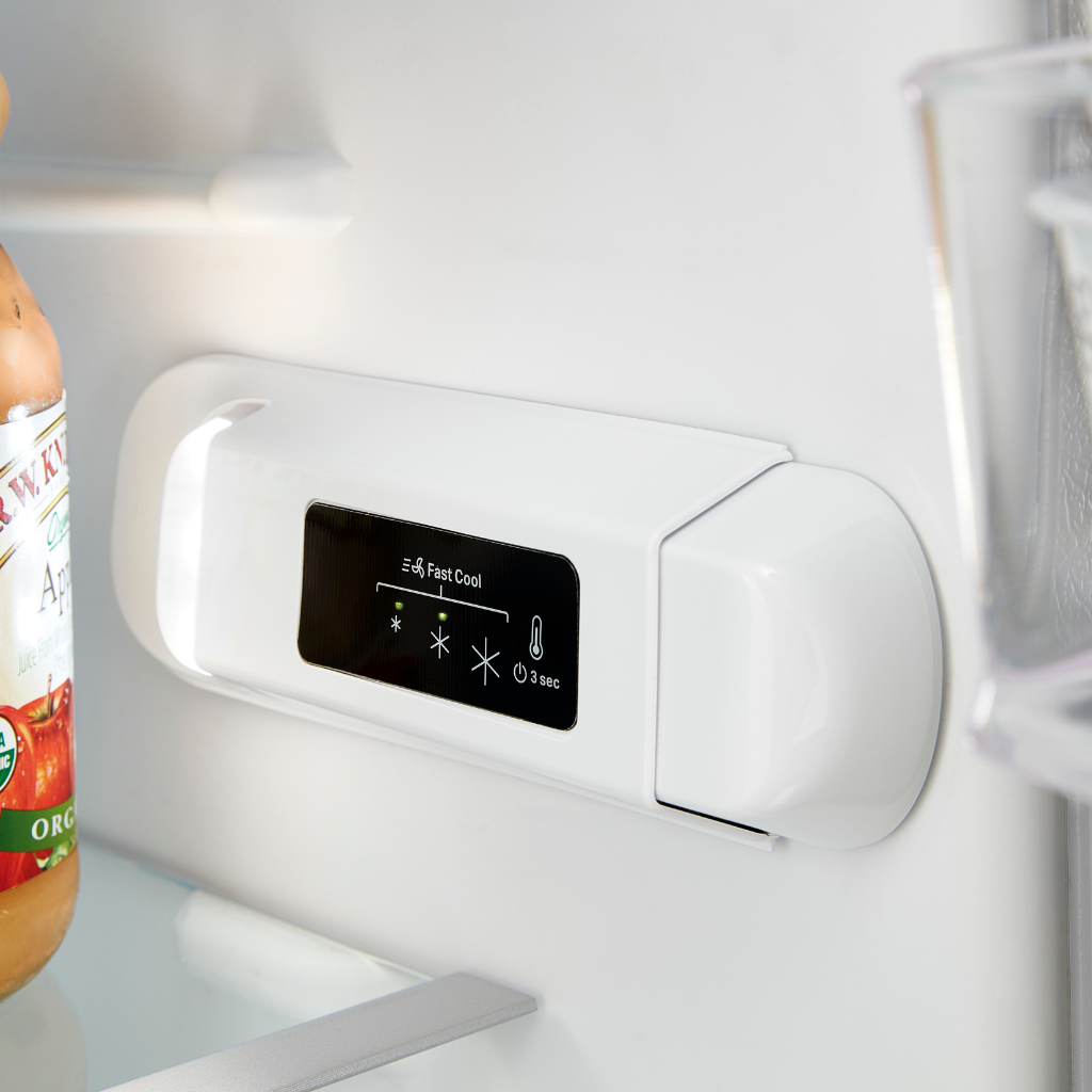 Si está buscando una nevera pequeña de bajo consumo, nuestra nevera con congelador superior le ofrece la flexibilidad que necesita para aprovechar cada centímetro útil. Características como el almacenamiento de galón en la puerta ayuda a liberar espacio en los estantes. Los controles digitales de temperatura y el kit de conexión de la máquina de hielo le permiten estar preparado para recibir a sus invitados, incluso en el último momento.
